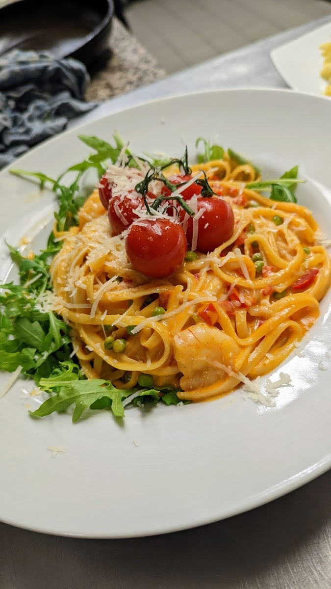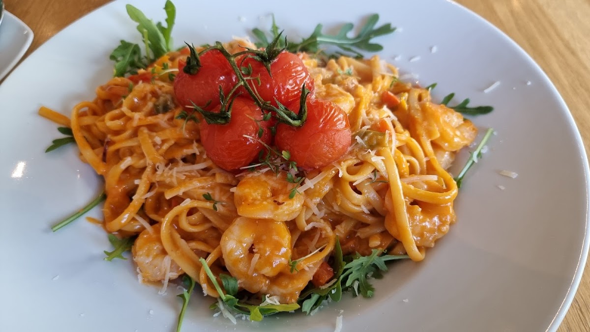 It's our first time in Germany on vacation and we wanted to eat here because of the good reviews. Luckily the workers there spoke decent English and we used a translator for the menu. The food was lovely, especially the shrimp on toast! The wine I had was also pretty good and we did not have to wait long for anything. My boyfriend could not finish his plate so we had it put in a to go box. Unfortunately we forgot that box at the counter XD. Coffee looked and tasted good!