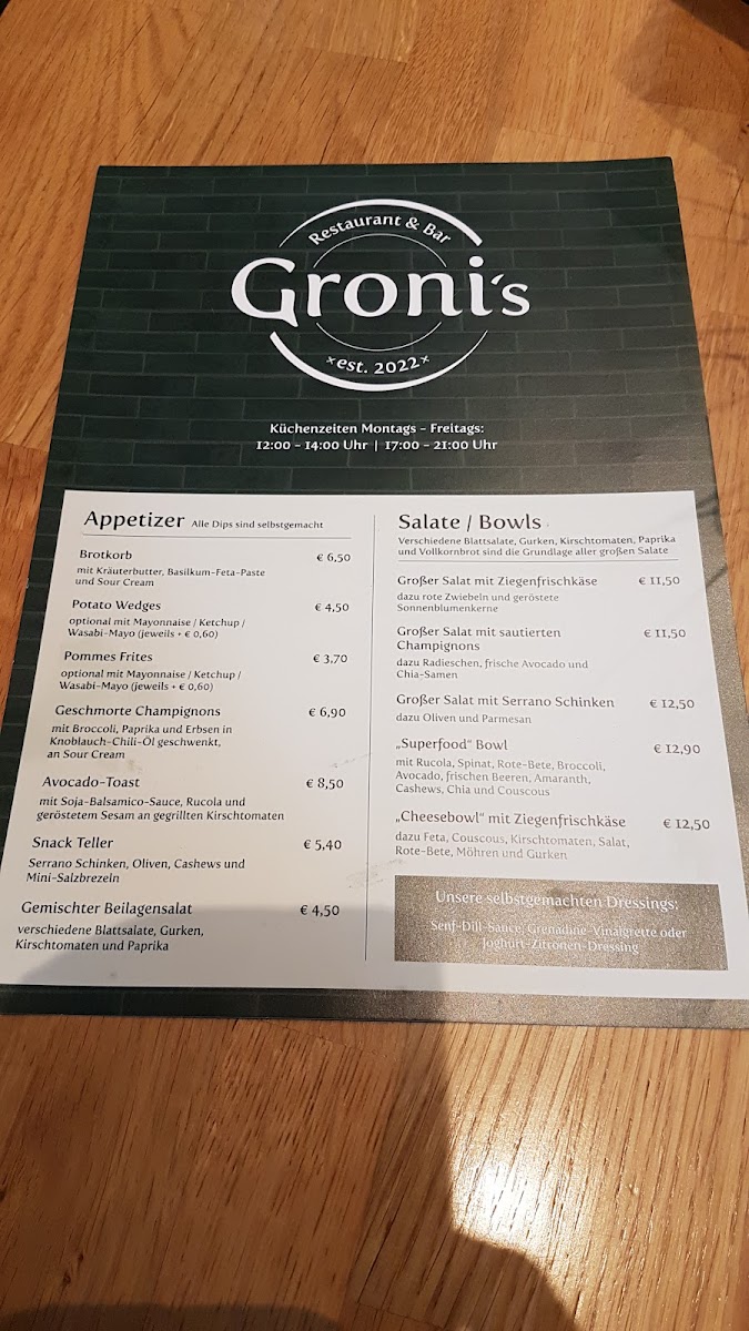 Welcome to Groni's Restaurant & Bar, a hidden gem nestled at Langforter Str. 72 in Langenfeld, Germany. This inviting establishment is more than just a restaurant; it is a culinary haven where delightful flavors meet warm hospitality. Our guests rave about the exquisite shrimp on toast and the rich selection of wines, all complemented by prompt service. Marc Berghaus even chose Groni's to celebrate his wedding, praising the attentive team and beautifully presented dishes that set the perfect atmosphere for special occasions.